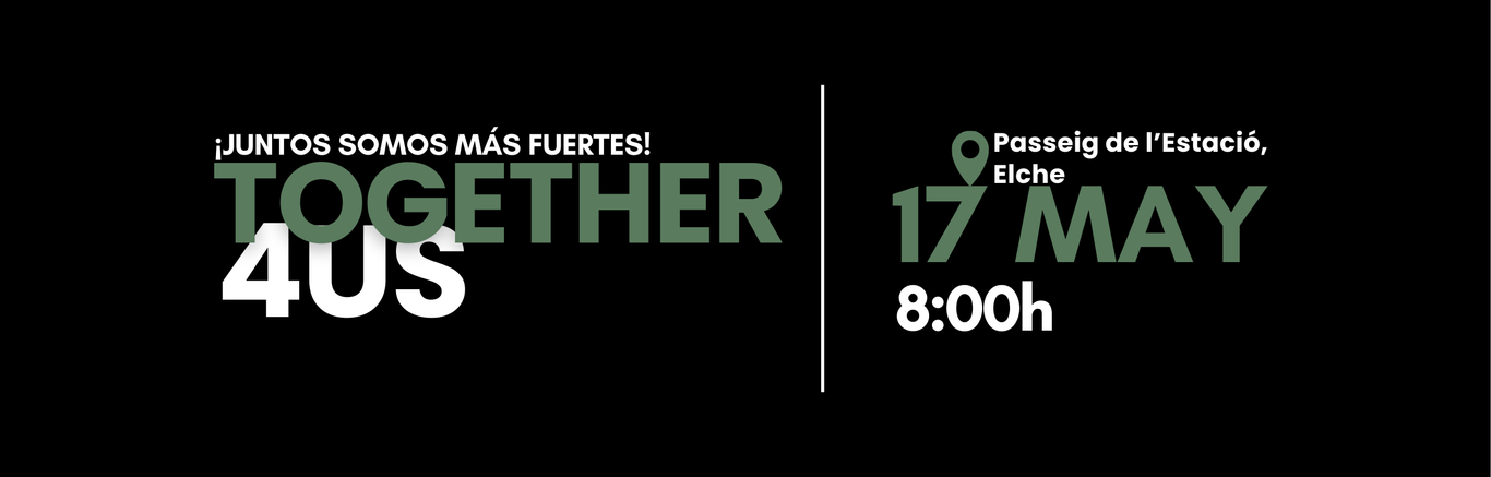 Together4Us 2026 llega para unir fuerzas, corazones y pasos en una carrera que será más que un reto: ¡será una celebración de la comunidad y la superación! Elche se llena de energía y color el 17 de mayo de 2026, cuando corredores de todas las edades se reúnan para compartir una experiencia única bajo el sol brillante de Elche.